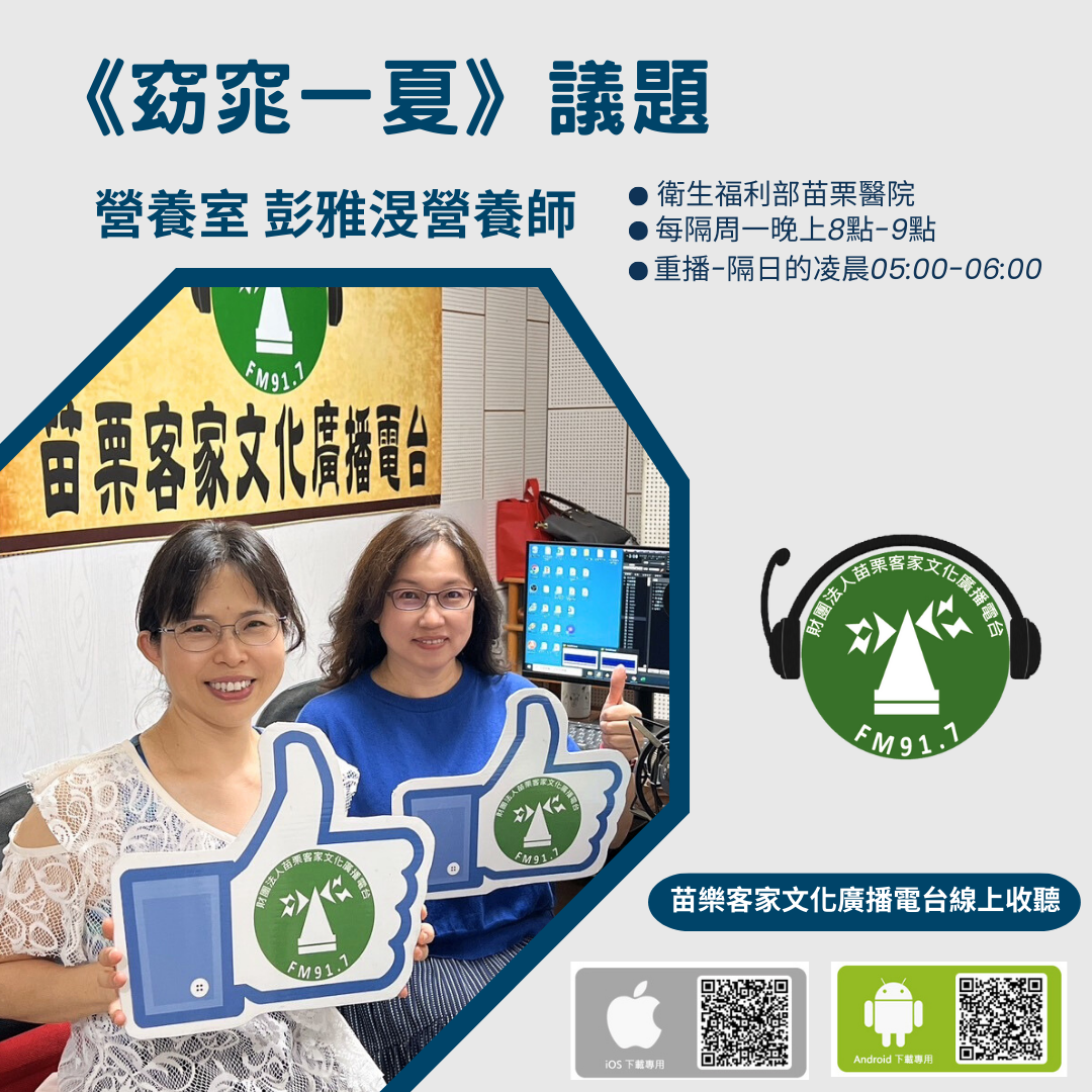 7/29(一)節目【健康生活】《窈窕一夏》的議題 營養室 彭雅渂營養師